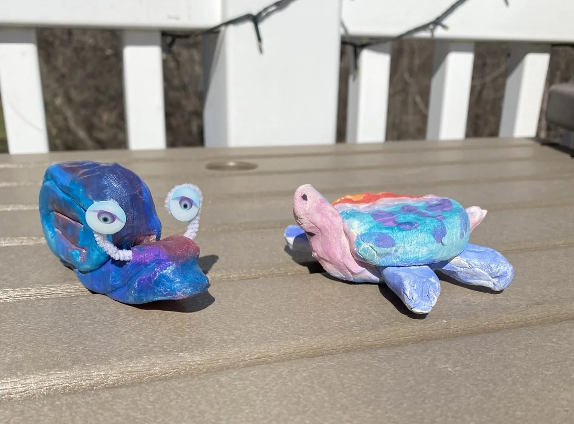 Since you made it to the bottom you get to see my nieces fabulous art. She seems compelled to make these slow moving animals out of clay in art class, and it makes me believe she knows something it’s taken me a long while to learn. (she did give me permission to share, and would like you to know the turtles name is Fire and Ice and the snail is Fred and those were the only eyes available.)